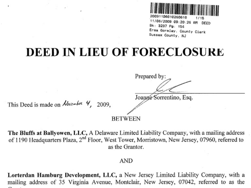 A Deed in lieu of foreclosure is a deed instrument in which a mortgagor (i.e. the borrower) conveys all interest in a real property to the mortgagee (i.e. the lender) to satisfy a loan that is in default and avoid foreclosure proceedings.